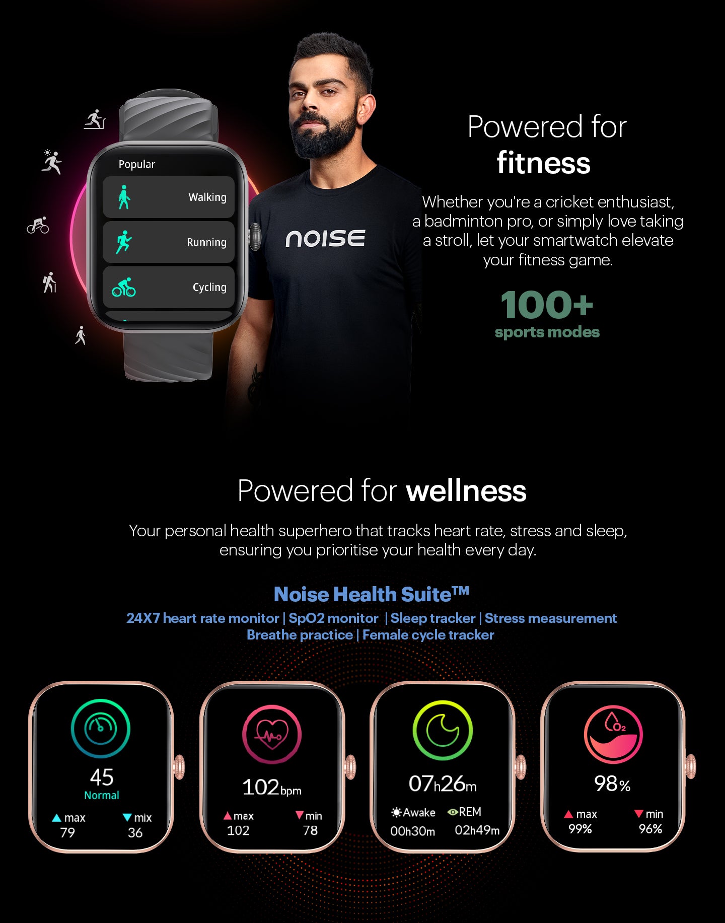 The Noise ColorFit Spark is not just about staying connected; it also takes care of your health. With the Noise Health Suite, the smartwatch offers 24×7 heart rate monitoring, keeping users informed about their cardiovascular health. Additionally, the SpO2 measurement feature helps users track their blood oxygen levels, while the sleep tracking function provides insights into the quality and duration of their sleep. For managing stress levels, the smartwatch includes a stress management feature that helps users stay calm and centered amidst the challenges of daily life. Furthermore, the dedicated female cycle tracker is a valuable addition for women to monitor their menstrual cycles and stay informed about their reproductive health.