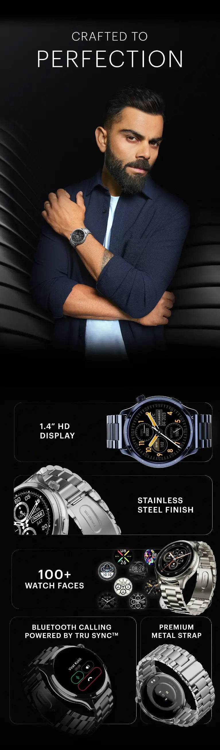 The NoiseFit Mettle is compatible with both Android and iOS platforms, providing flexibility for users across different ecosystems. To personalize the smartwatch, it offers over 100 customizable watch faces, allowing users to choose a design that suits their style and preferences.