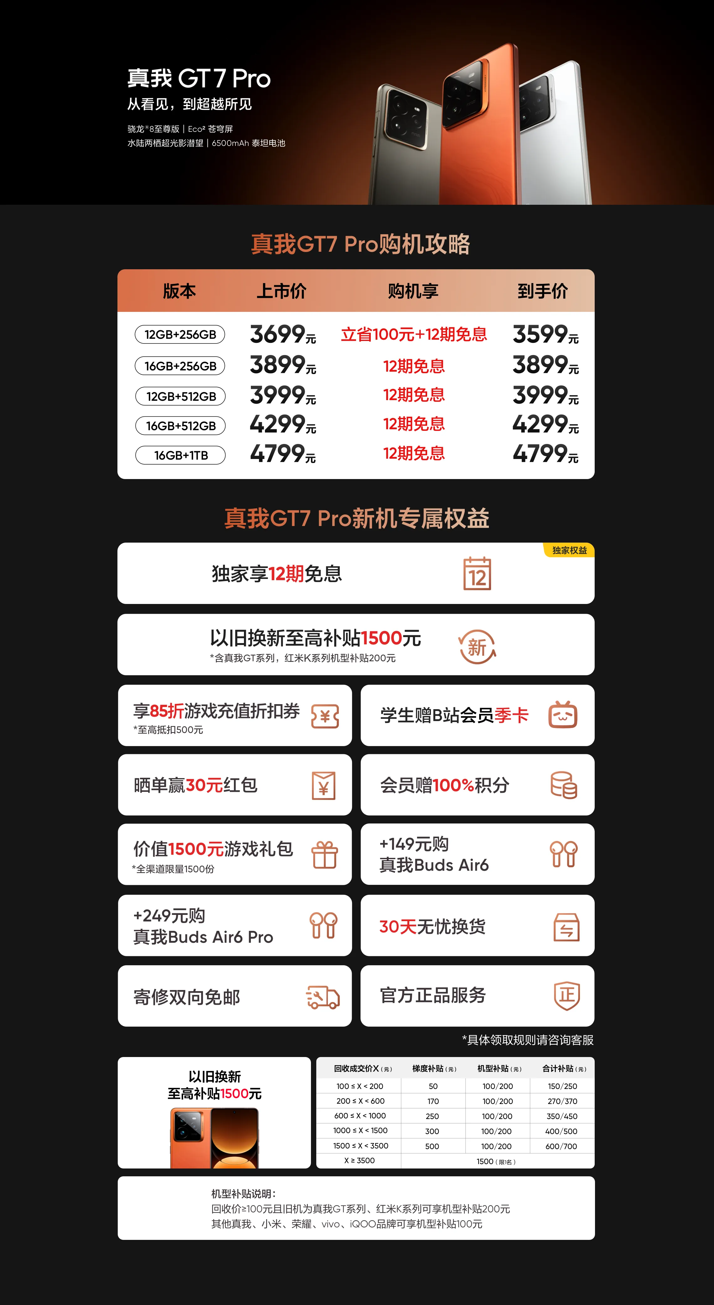 The Realme GT 7 Pro is available in Mars Orange, Star Trail Titanium, and White color options and comes in multiple configurations: