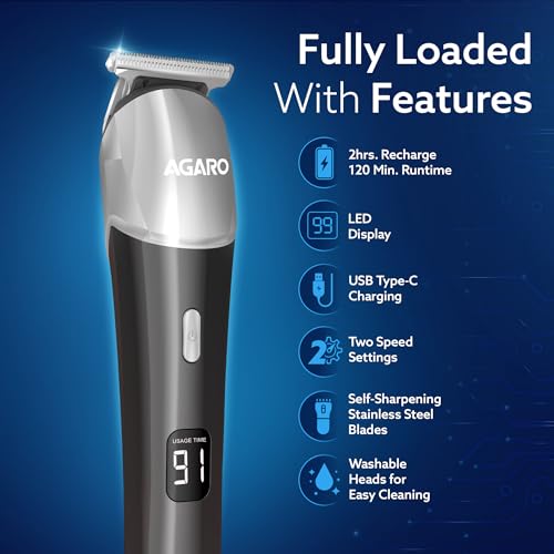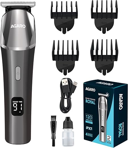 Specification: AGARO Royal Beard Trimmer For Men, Hair Trimming, High Precision Trimmer, Cordless, 4 Length Setting Combs, Self Sharpening Stainless Steel Blade,…