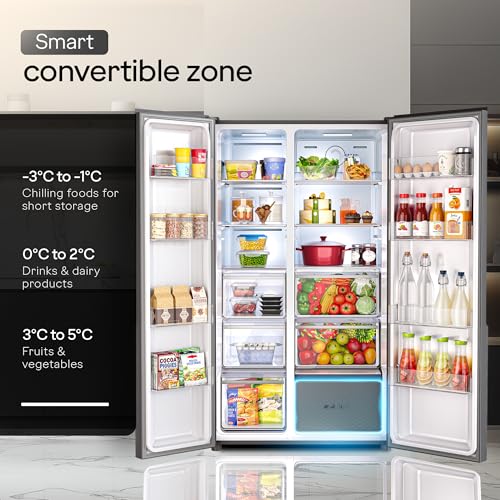 - Special Features: Smart convertible zones: The refrigerator has dedicated convertible zones with a temperature range of -3°C to 5°C. -3°C to -1°C for chilling food for short storage, 0°C to 2°C for drinks and dairy products, 3°C to 5°C for fresh fruits and vegetables
