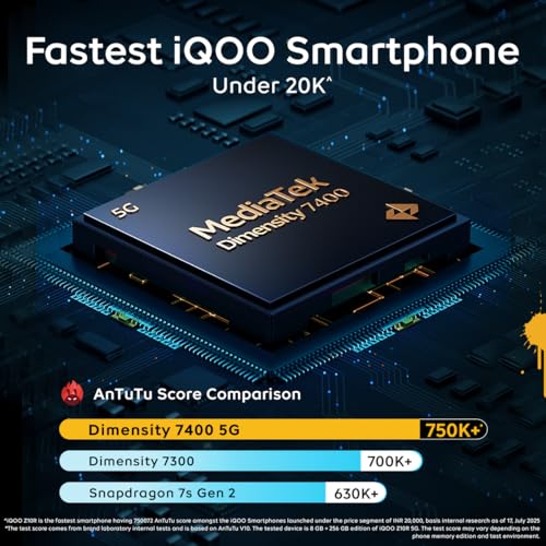 - Powerful Dimensity 7400 5G Processor with 750K+ AnTuTu Score* – Built on flagship 4nm TSMC process technology to provide exceptional power-efficiency. Comes with Large Graphite cooling area to give excellent heat management.