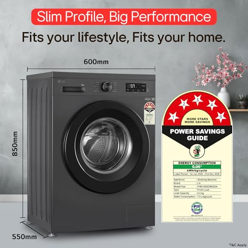 Specification: LG 9 Kg, 5 Star, Direct Drive Technology, Steam Wash, 6 Motion DD, Fully-Automatic Front Load Washing Machine (FHB1209Z2M, Allergy Care, In-Built…