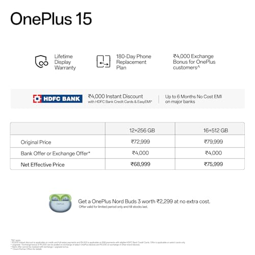 - Power On. Limits Off – Meet the OnePlus 15, India’s first smartphone powered by the Snapdragon 8 Elite chipset. With advanced 360° cooling, ultra-fast RAM, and high-speed storage, experience gaming, multitasking, and performance that never slows down.
