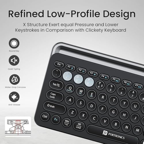 Portronics Bubble 3.0 Wireless Keyboard with Bluetooth + 2.4 GHz USB Receiver, Rechargeable Battery, Dual Height Adjustment, Multimedia Hotkeys…