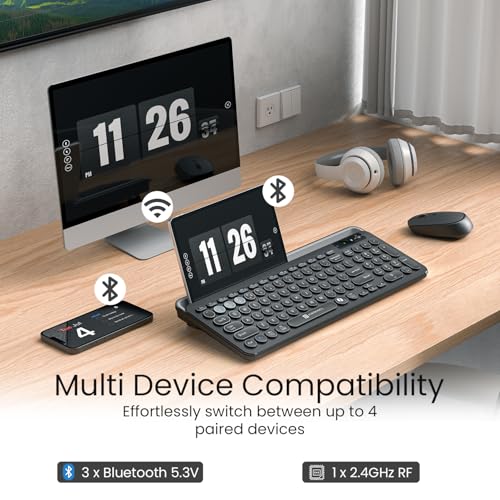 - Wireless Multi-Device Connectivity: Seamlessly switch between 3 devices with Bluetooth 5.3 and 2.4GHz RF — perfect for multitaskers across phone, tablet, and laptop.