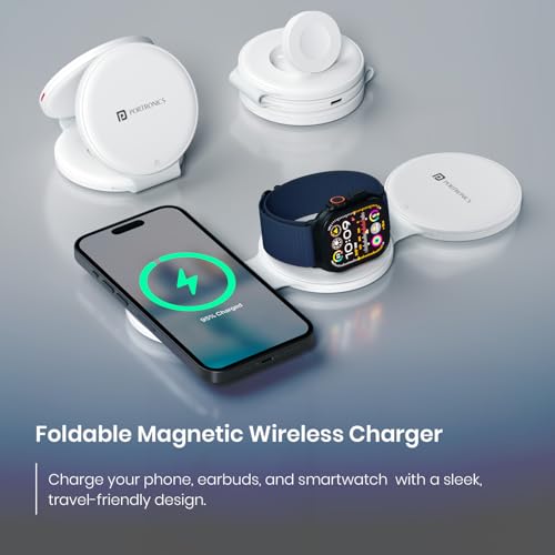 Portronics ChargeMate Trio 3 in 1 Wireless Charger with Multifunctional Fast Charging Data Cable Kit, 15W Wireless Output, Earbuds/Watch Wireless…
