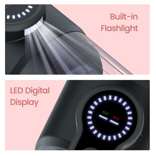 - LED Digital Display & Built-in Flashlight: Keep track of battery life and suction power on the LED display. The built-in flashlight helps clean dark corners and under furniture with ease.