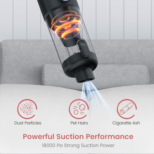 - Powerful 18,000 Pa Suction & Blower Function: High-efficiency motor delivers strong suction to remove dust, pet hair, and debris from carpets, car seats, and furniture. The blower function helps clear out tight spaces effortlessly.