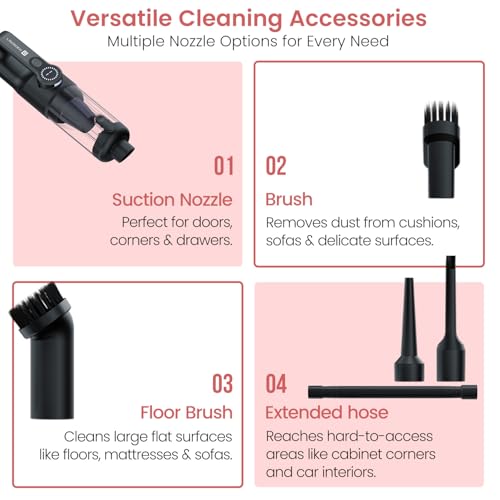 - 2-in-1 Cordless & Corded Vacuum Cleaner: Use it wirelessly with a rechargeable battery or plug it into your car’s power outlet for extended cleaning. Perfect for home, office, and car interiors.