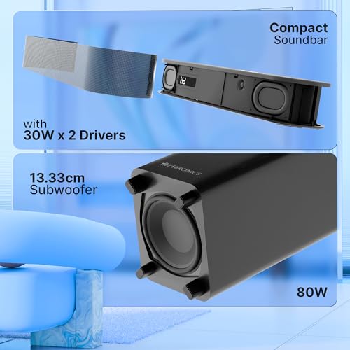 Specification: Zebronics 140W Soundbar with 13.3cm subwoofer, Dual Drivers, Dolby Audio, Bluetooth v5.4, ARC, USB, Optical in, AUX, LED Display, Remote Control,…