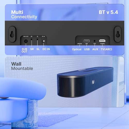 - MULTIPLE CONNECTIVITY: Supports Bluetooth v5.4, HDMI ARC, Optical IN, AUX, and USB, making it easy to pair with TVs, consoles, laptops, and media players without hassle.