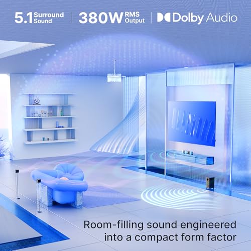 - OUTPUT POWER: Delivers a strong 380W RMS setup with a powerful subwoofer, triple-driver soundbar, and rear satellites that fill your space with rich, impactful audio.